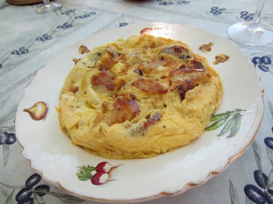 We spent the past week in the Basque country, mostly in Spain but a few nights in France as well. It is really a beautiful part of the world and well worth a visit. I thought that I would collect recipes while we were there for some of the wonderful tapas we had in the bars of San Sebastián – there called pintxos – and put them on my blog, but in retrospect this doesn’t seem like such a good idea: A lot of the ingredients we love best are not generally available (foie gras, jamon Ibérico, salt cod, fresh anchovies, albacore tuna, piquillo peppers, wild mushrooms) and then the skewers and canapes that sparkle on the bar counters are mostly a lot of trouble to make. So I’m just going to give my version of the most universally popular tapa of all – tortilla de patata – and hope that you will be able to make it to San Sebastián sometime soon to experience the tapas for yourselves.