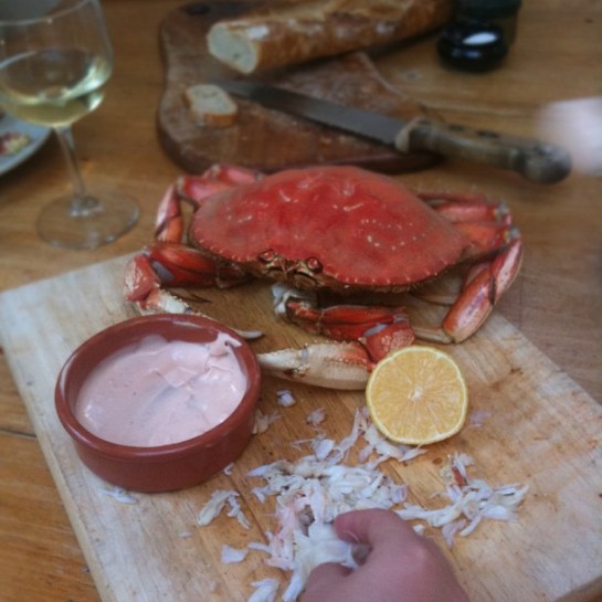 Plunge the tomatoes into boiling water for a minute, drain, rinse in cold water and peel. Chop them up roughly and puree them in the food processor, leaving a bit of texture. Add the rest of the ingredients and pulse a few times to combine, then add salt and pepper to taste. Chill well and serve. This is a wonderfully rich soup. Don’t leave out the ham – surprisingly, most people think it tastes like crab.
