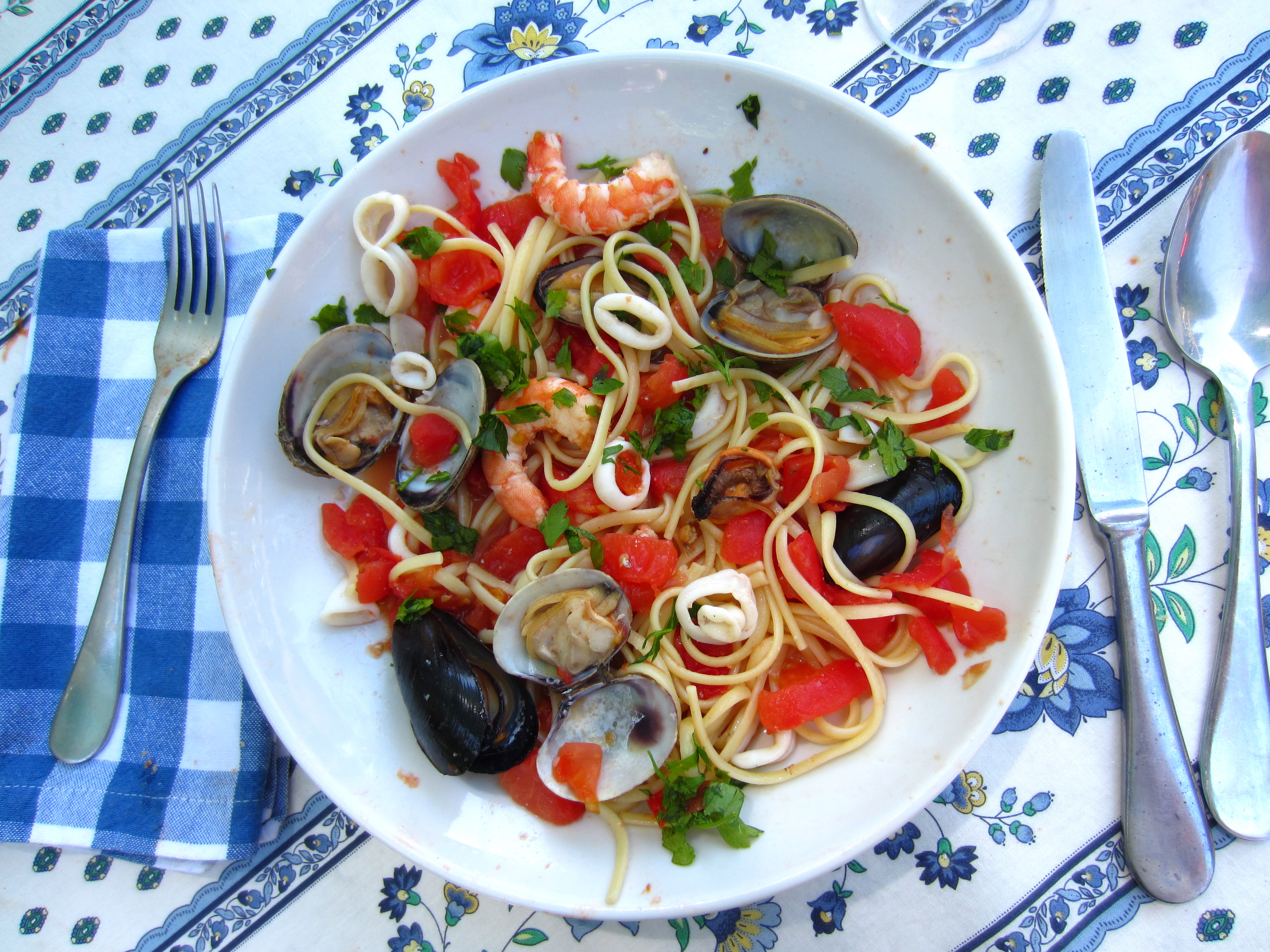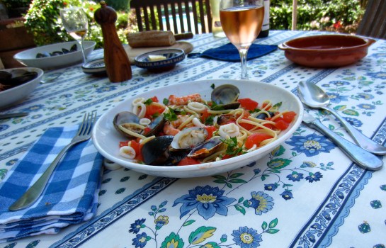 These are two summer pasta dishes where all you have to cook is the pasta. We love the contrast between the hot pasta and the cold sauce and even if the pasta cools a bit, they are still a summer delight – easy and quick to make with ingredients you probably have on hand. Both recipes are for four but you can obviously increase or decrease quantities easily, depending on whether you’re serving it as a first or main course. Although we prefer lighter pastas such as angel hair or spaghettini for both, you can use whatever pasta you have on hand.
