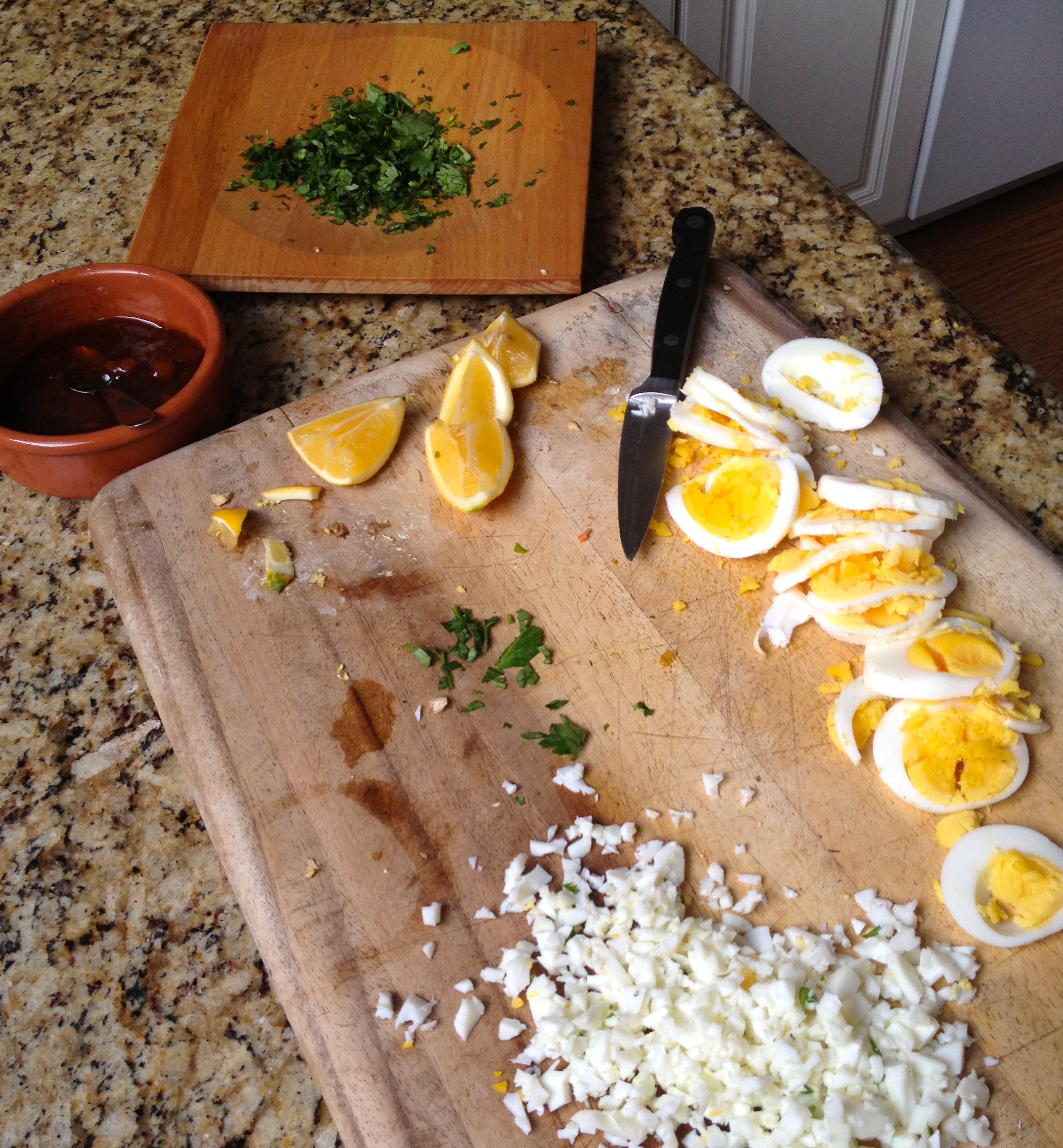 Cook the onion in the olive oil over low heat in a heavy-bottomed frying pan, five minutes. Add the sliced pepper and continue cooking another 10 minutes. Add the garlic, chorizo, and tomatoes and cook until the sauce has thickened and reduced, about 15 minutes. If it gets too dry, add a little water or wine. If the chorizo is not hot, you will want to add a good pinch of cayenne or piment d’Espelette – the sauce should be spicy.