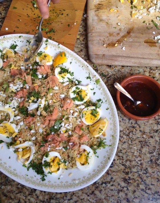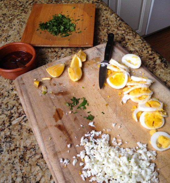 This is our favorite mussel dish. I guess we call it Portuguese because it mixes mussels, chorizo (or linguiça) and cilantro and this is thought of as a Portuguese combination. We usually serve it with pasta although it’s good on its own and the sauce even without the mussels is so delicious that we’ve been known to serve it with pasta when no mussels are available. Here in France we get moules de Bouchot in the summer – they are small but the shells are completely filled so that a pound or two goes a long way. Make sure your mussels are fresh – no cracked or broken shells nor ones that don’t close up when you tap them. We steam the mussels separately in white or rosé wine and then either shell them and add them to the sauce or, better still, mix the sauce with the pasta and bring the steamed pot of mussels to the table so that your guests can shell them themselves and add them to their bowl of pasta. It seems a pity to cook the mussels in the delicious sauce – too much of it is lost to the shells. Either way, this dish is a winner.