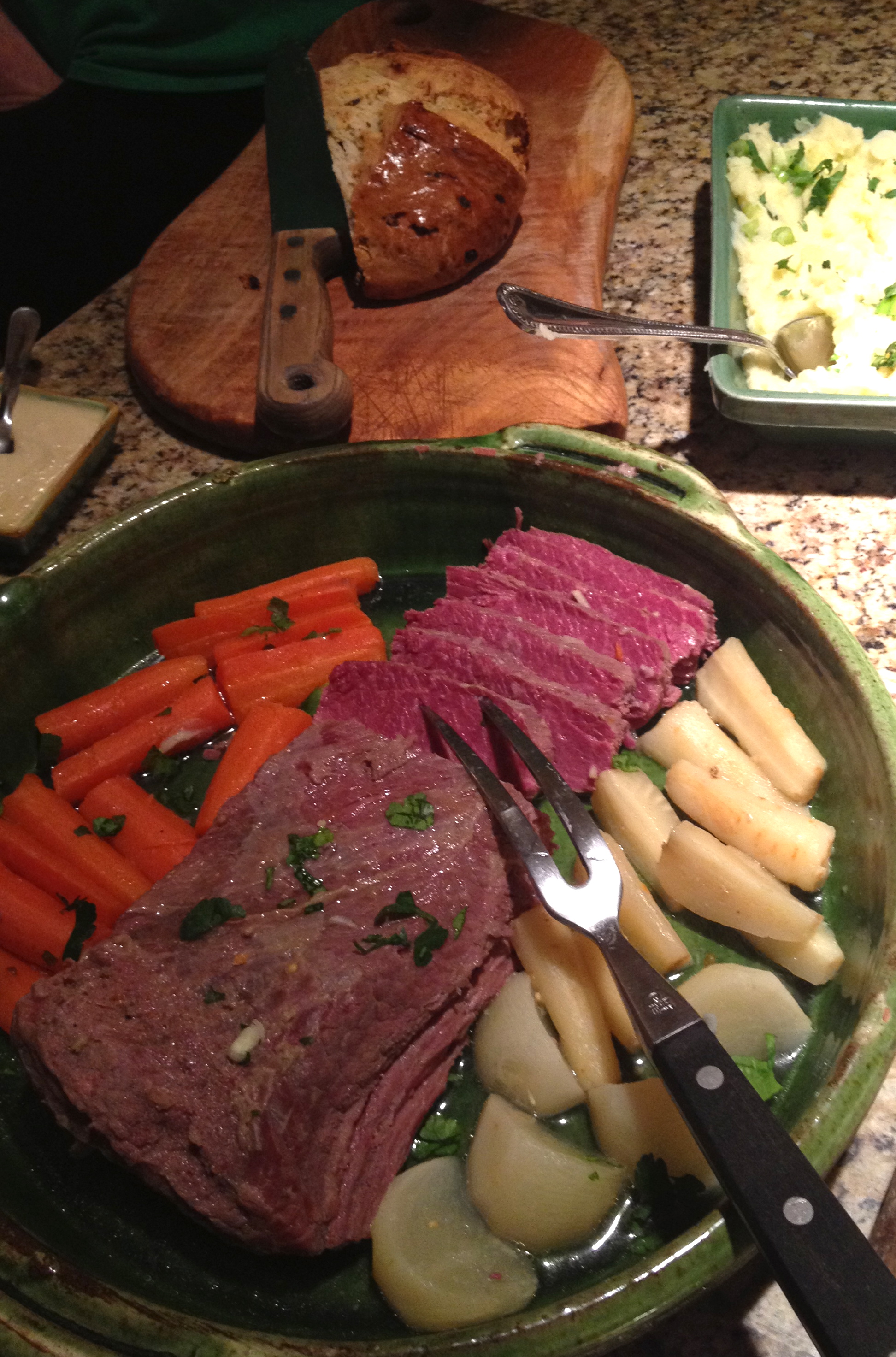 The annual obligation to cook corned beef and cabbage has arrived. While no self-respecting Irish person would be caught dead cooking corned beef and cabbage on March 17th, we in America (encouraged no doubt by the Corned Beef Industry and some kind of misguided affinity with the Irish) feel an obligation to do so. (Disclaimer: My mum was born in Waterford.) It’s actually not a bad dish, especially if you cook it right, make colcannon to go with it, and use some of the “stock” to make a hearty soup for the next day.