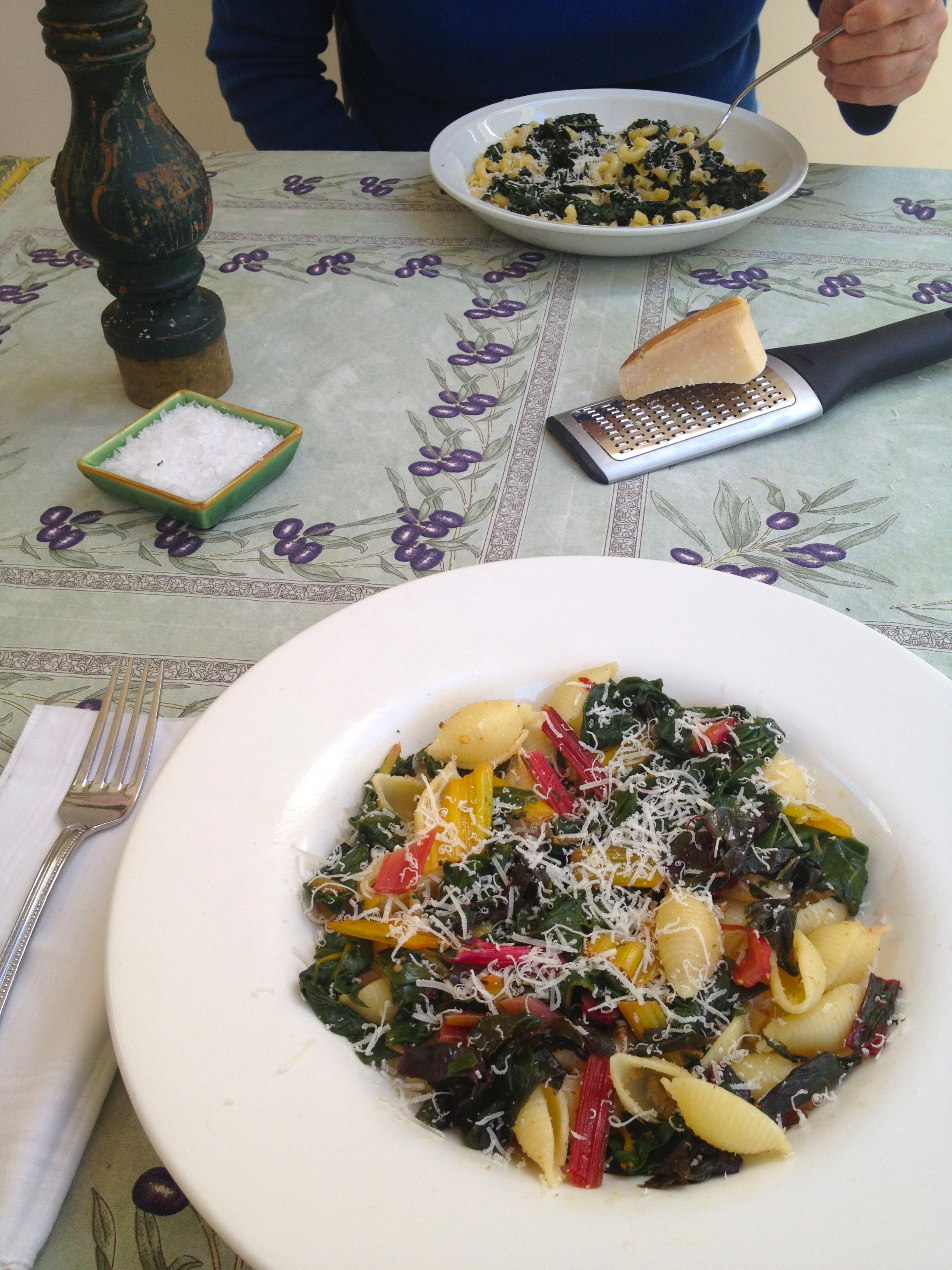 Mix all the ingredients in a bowl large enough to accommodate them and the pasta. Cook the pasta in salted water according to the package directions. Drain well and add to the bowl, tossing to coat with the sauce. Check for salt – you won’t need pepper. Serve immediately.